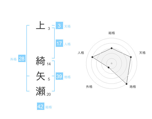上 綺矢瀬さんを姓名の画数から五運を鑑定