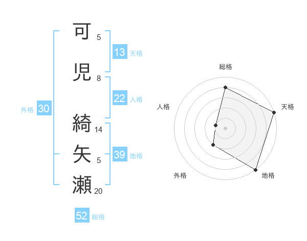 可児 綺矢瀬さんの総格は52画の4点!