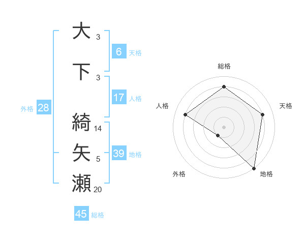 大下 綺矢瀬さんを姓名の画数から五運を鑑定