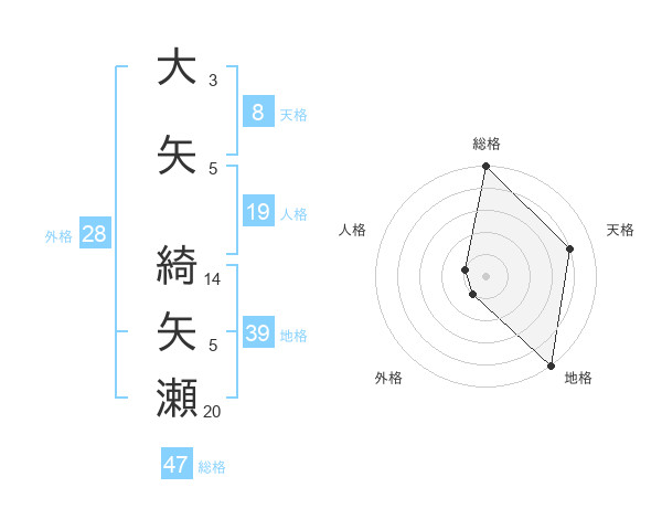大矢 綺矢瀬さんを姓名の画数から五運を鑑定
