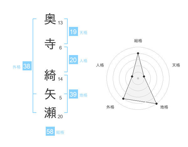 奥寺 綺矢瀬さんの総格は58画の4点!