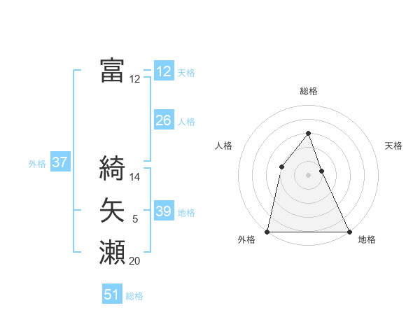 富 綺矢瀬さんの総格は51画の3点!
