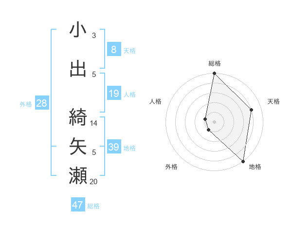 小出 綺矢瀬さんを姓名の画数から五運を鑑定