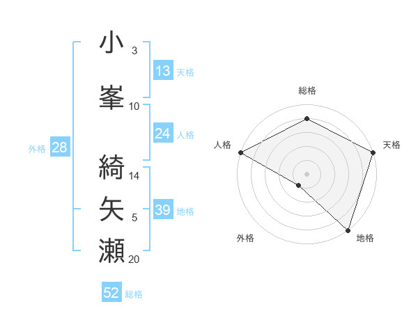 小峯 綺矢瀬さんを姓名の画数から五運を鑑定