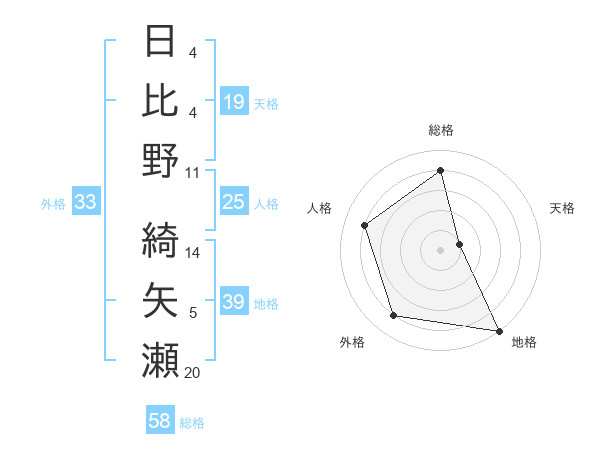 日比野 綺矢瀬さんを姓名の画数から五運を鑑定