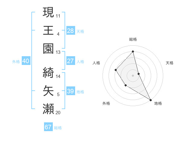 現王園 綺矢瀬さんを姓名の画数から五運を鑑定