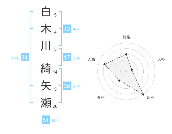 白木川 綺矢瀬さんを姓名の画数から五運を鑑定
