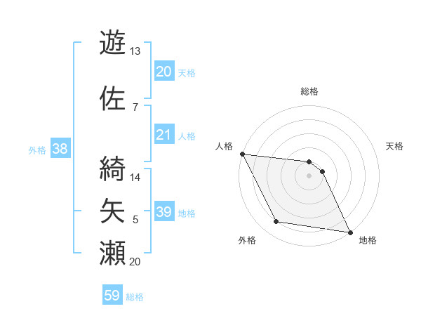 遊佐 綺矢瀬さんの外格は38画の4点!