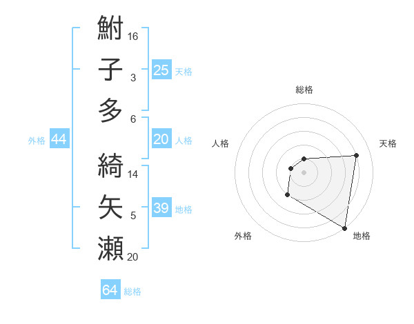 鮒子多 綺矢瀬さんの総格は64画の1点