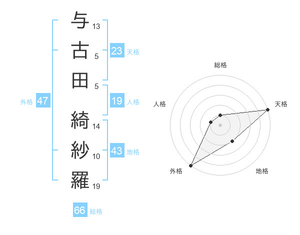与古田 綺紗羅さんの天格は23画の5点!