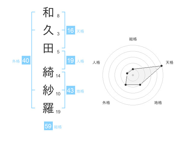 和久田 綺紗羅さんを姓名の画数から五運を鑑定