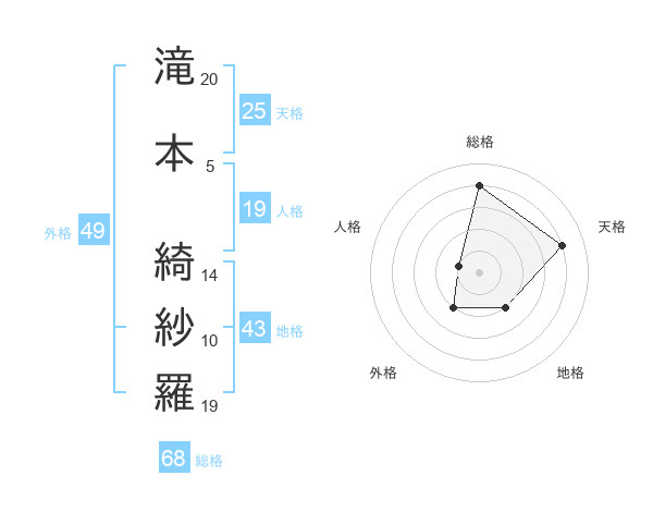 滝本 綺紗羅さんを姓名の画数から五運を鑑定