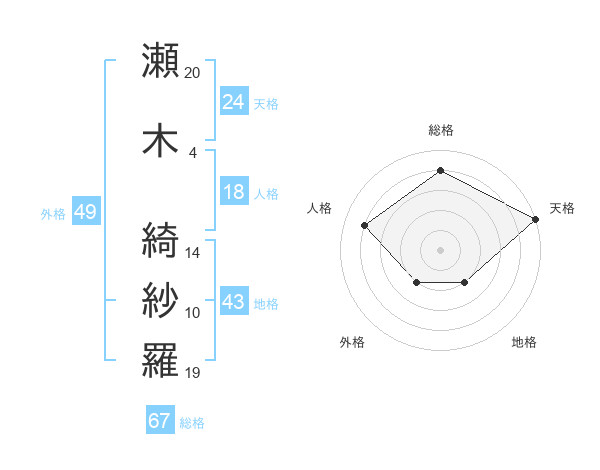 瀬木 綺紗羅さんを姓名の画数から五運を鑑定