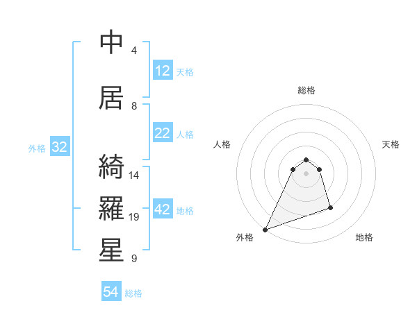 中居 綺羅星さんの外格は32画の5点!