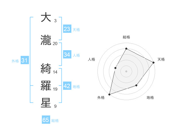 大瀧 綺羅星さんを姓名の画数から五運を鑑定