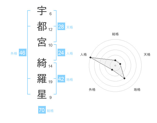 宇都宮 綺羅星さんを姓名の画数から五運を鑑定