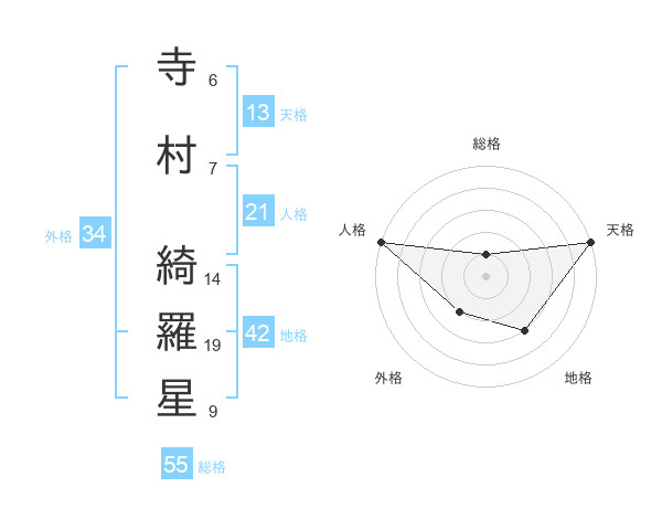寺村 綺羅星さんを姓名の画数から五運を鑑定