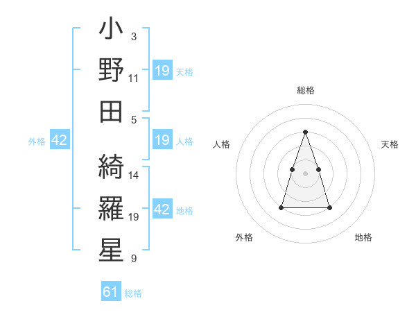 小野田 綺羅星さんを姓名の画数から五運を鑑定