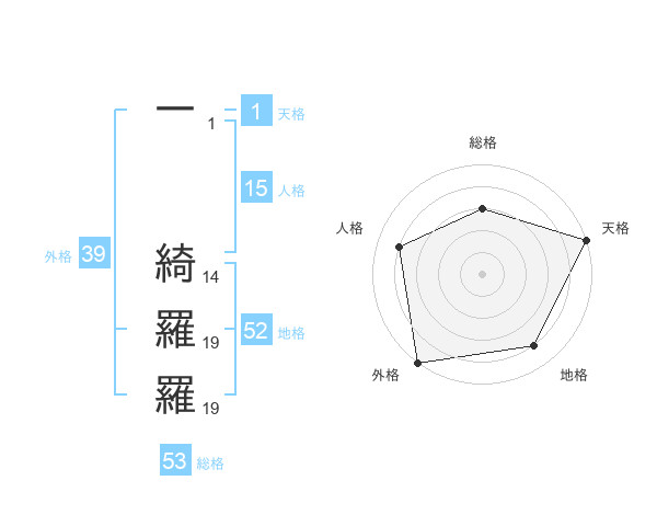 一 綺羅羅さんを姓名の画数から五運を鑑定