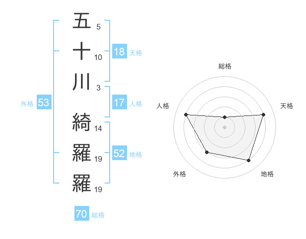 五十川 綺羅羅さんの総格は70画の1点!