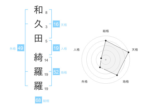 和久田 綺羅羅さんを姓名の画数から五運を鑑定