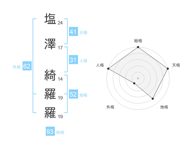 塩澤 綺羅羅さんの総格は93画の5点!