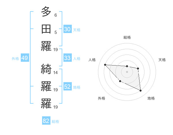 多田羅 綺羅羅さんを姓名の画数から五運を鑑定