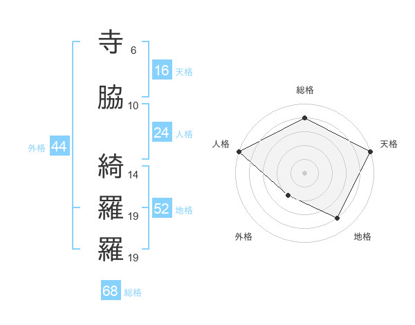 寺脇 綺羅羅さんを姓名の画数から五運を鑑定