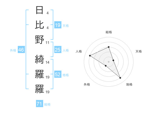 日比野 綺羅羅さんを姓名の画数から五運を鑑定