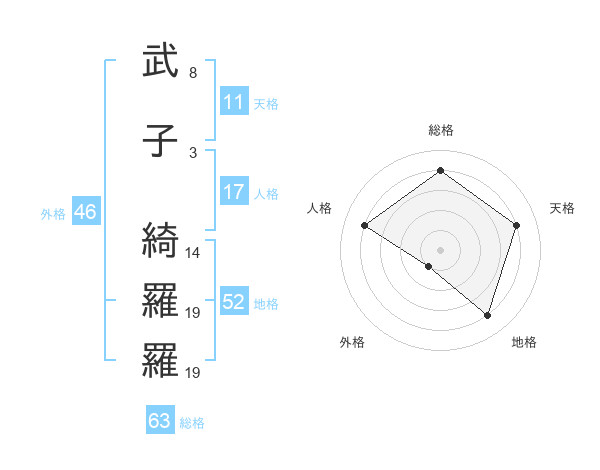 武子 綺羅羅さんを姓名の画数から五運を鑑定
