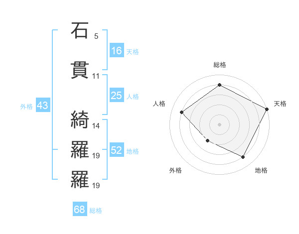 石貫 綺羅羅さんを姓名の画数から五運を鑑定