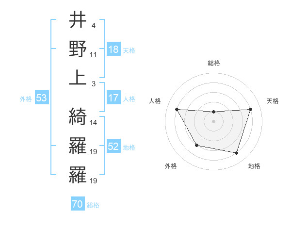 井野上 綺羅羅さんを姓名の画数から五運を鑑定