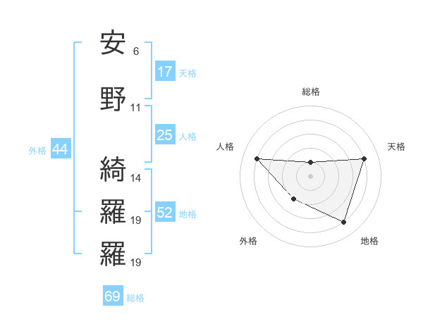 安野 綺羅羅さんを姓名の画数から五運を鑑定