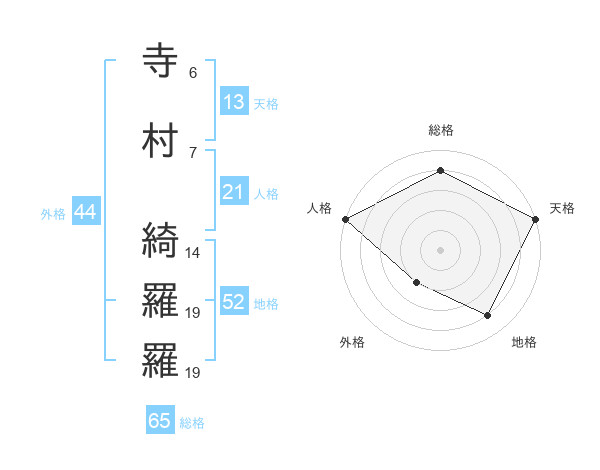 寺村 綺羅羅さんの天格は13画の5点!