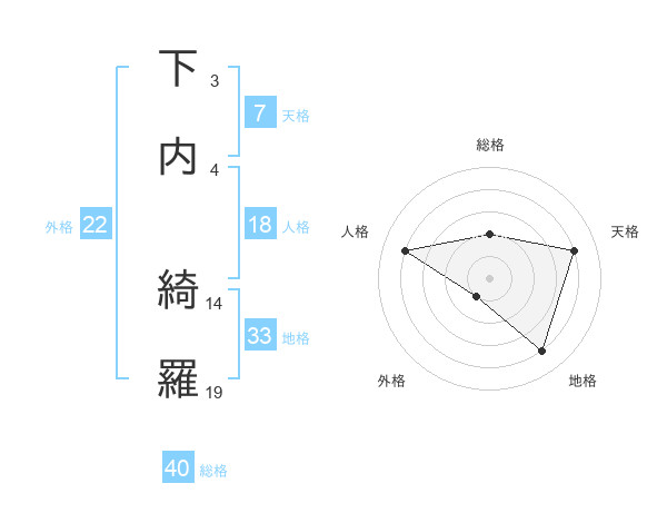 下内 綺羅さんを姓名の画数から五運を鑑定