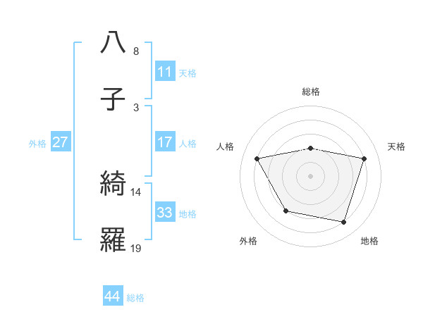 八子 綺羅さんの総格は44画の2点!