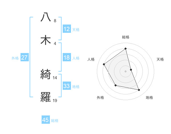 八木 綺羅さんを姓名の画数から五運を鑑定
