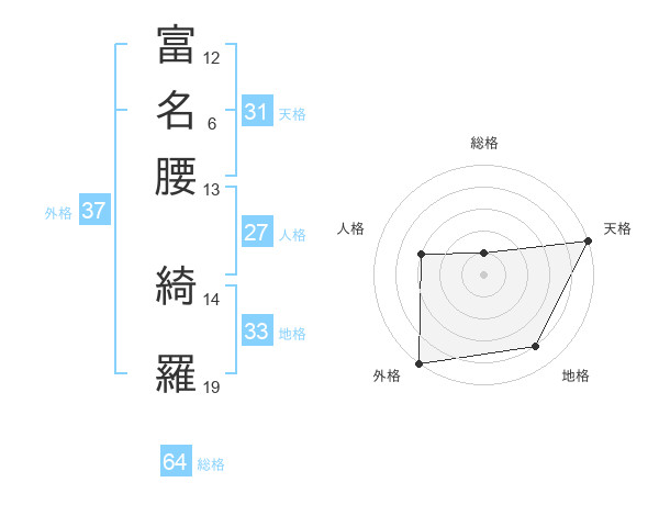 富名腰 綺羅さんを姓名の画数から五運を鑑定