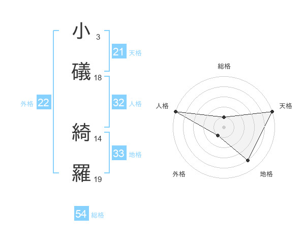 小礒 綺羅さんを姓名の画数から五運を鑑定