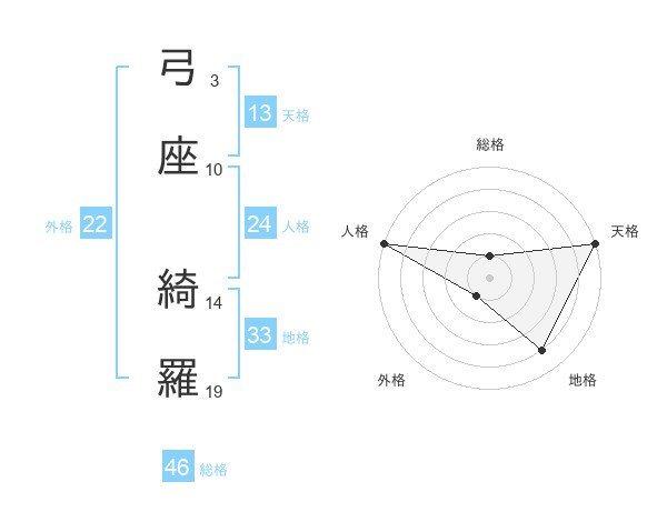 弓座 綺羅さんの天格は13画の5点!
