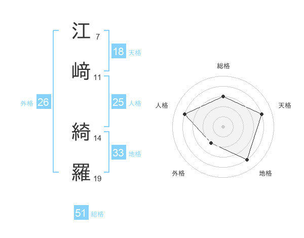 江﨑 綺羅さんの総格は51画の3点!