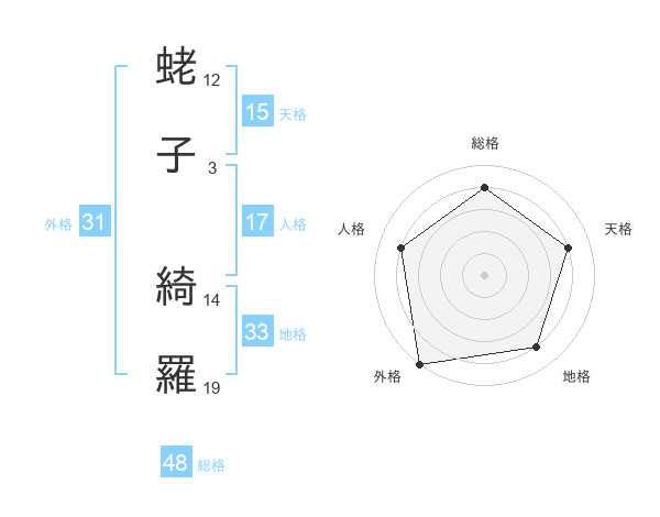 蛯子 綺羅さんの外格は31画の5点!