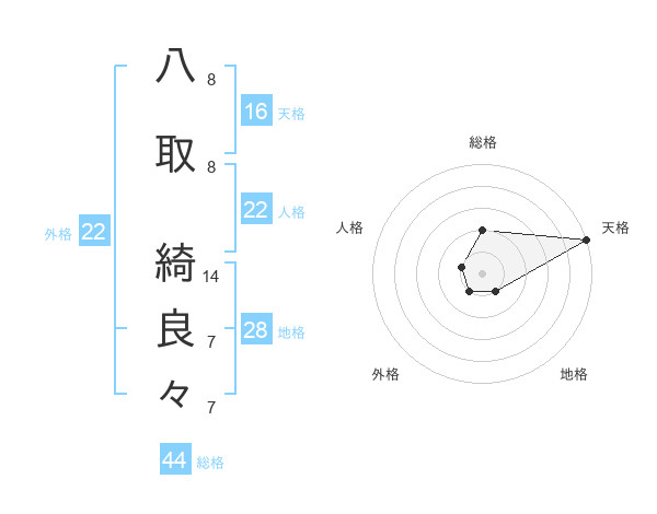八取 綺良々さんを姓名の画数から五運を鑑定