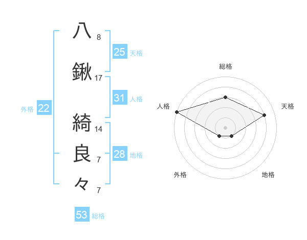 八鍬 綺良々さんの外格は22画の1点!