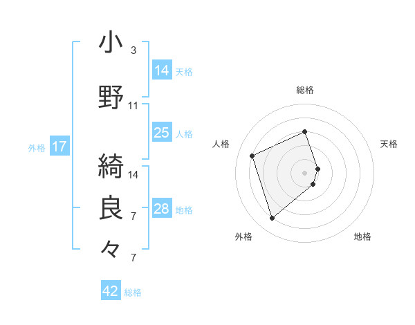 小野 綺良々さんの外格は17画の4点!