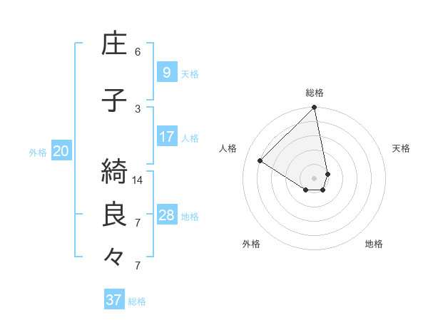 庄子 綺良々さんを姓名の画数から五運を鑑定