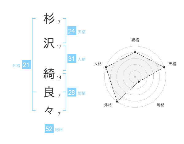 杉沢 綺良々さんを姓名の画数から五運を鑑定