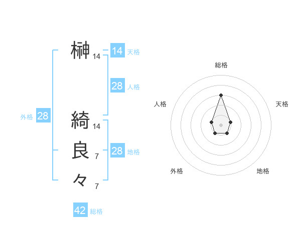 榊 綺良々さんの総格は42画の3点!