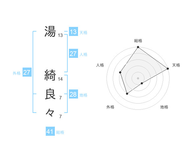 湯 綺良々さんを姓名の画数から五運を鑑定