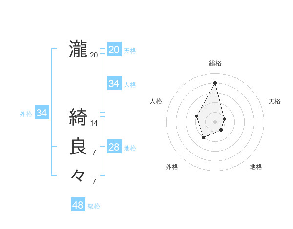 瀧 綺良々さんの外格は34画の2点!